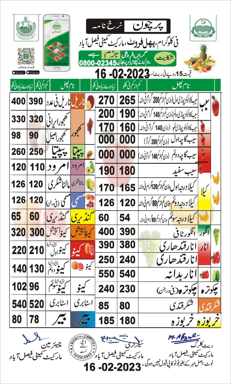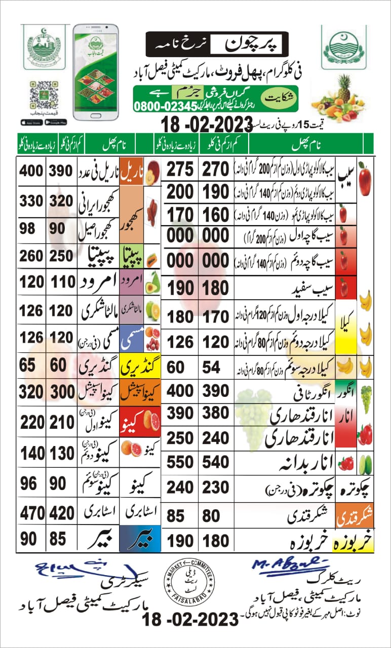 Fruits Rate List